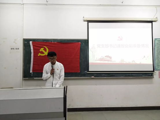 大会第二项议程党支部书记通报会前准备情况。学生党支部书记谢朋涛同志从会前精心组织集中学习、深入开展谈心谈话、广泛征求意见联系实际查摆问题三个方面通报了会前准备工作情况。