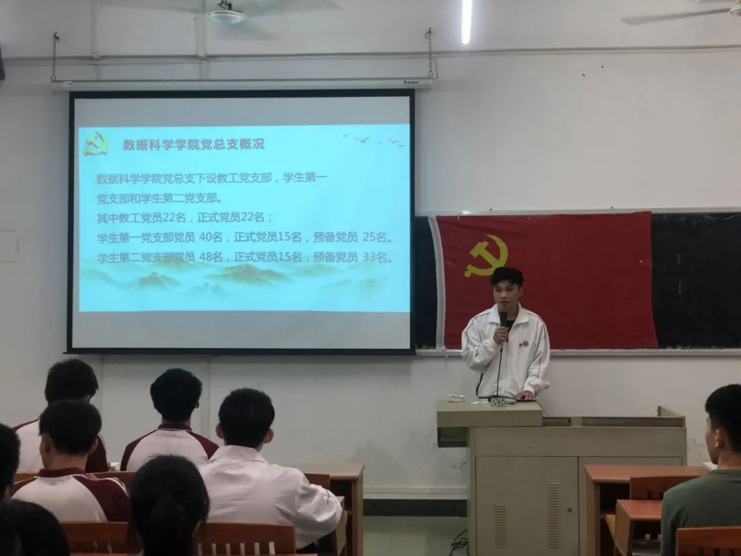 数据科学学院党总支下设教工党支部,学生第一党支部和学生第二党支部。其中教工党员28名,正式党员28名;学生第一党支部党员 41名,正式党员16名,预备党员 25名;学生第二党支部党员 48名,正式党员15名,预备党员 33名。