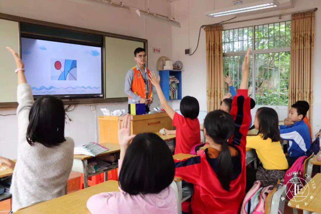 志愿者们还通过一些科学实验以及趣味小游戏调动了课堂的氛围,在课堂上孩子们除了收获科学知识外,还收到了志愿者们精心准备的小礼品。最后,志愿者与孩子们进行了歌曲合唱以及拍照留念。