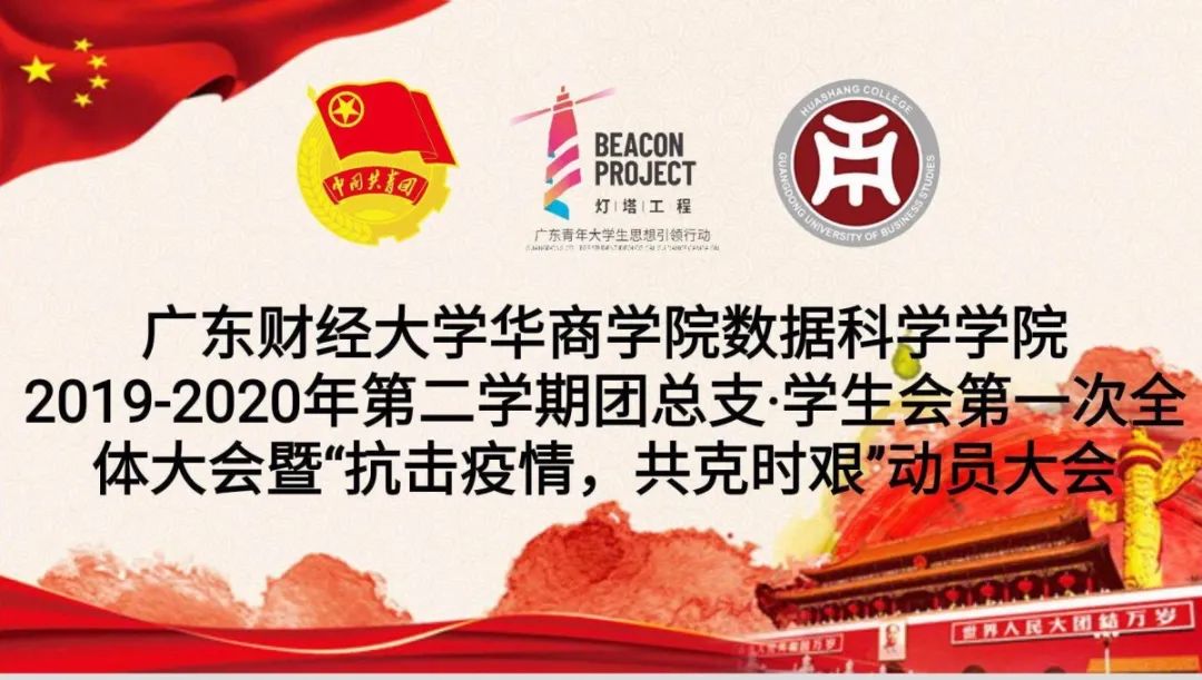 受疫情影响,广东财经大学华商学院数据科学学院2019-2020学年第二学期团总支∙学生会第一次全体大会暨“抗击疫情,共克艰时”动员大会于2020年3月17日20:00通过云会议的方式举行。