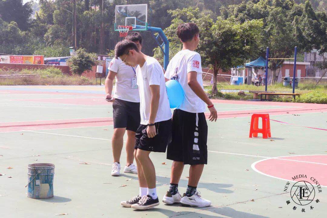 完成上述游戏后就到了终极游戏闯关四连,同学们需蒙眼转圈,走到指定地点;接着,他们需手持水杯接水并不断传递水,直至水量达到指定高度;之后,每组派出一人蒙眼踩气球,另一名队友提供语音帮助;最后则需要参与人员快速地完成绕口令。在组长的协调下,组员各司其职,在雀跃中结束了游戏。