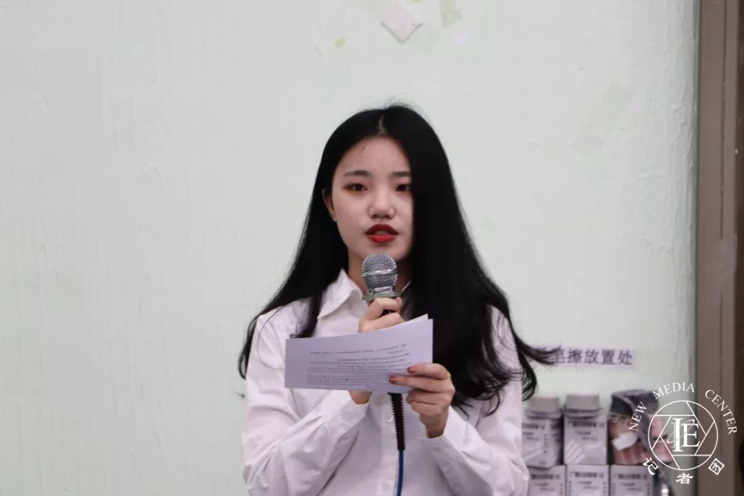 随后是何颖琪师姐作述职报告。何颖琪师姐主要讲述了过去一年各项工作的开展、工作内容以及成果。同时,她也指出学管过去一年里的不足之处。对此,她希望这一届的新成员吸取上一届的工作经验,扬长避短,取其精华,去其糟粕,加强与各班班长、助理班主任以及其他部门之间的交流合作,全心全意地辅助老师、服务同学,将学管的优良传统发扬光大。最后,她祝愿学管在新一届学生干部的带领下茁壮成长,更加辉煌。