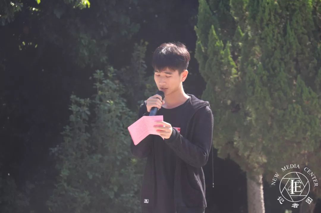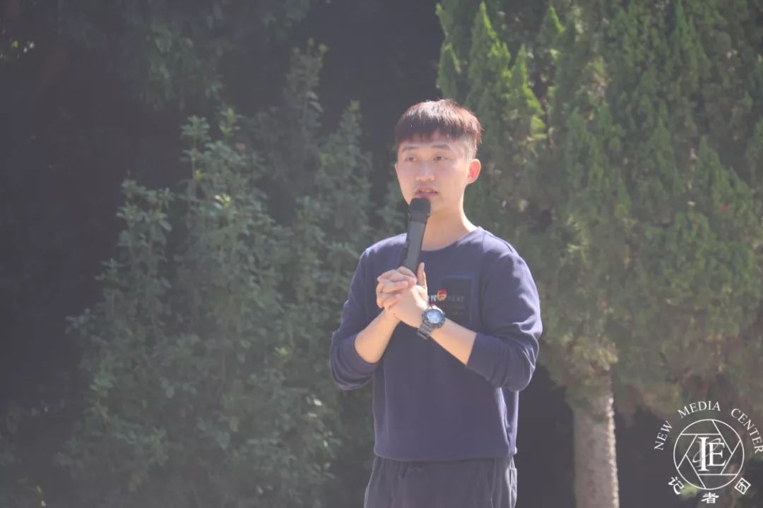 紧接着,学生代表朱绍玮发言。朱绍玮同学主要从对革命先辈的崇敬与学习和新青年与民族振兴的使命担当来号召同学们,树立远大的人生志向和坚定的理想信念,脚踏实地,时刻牢记为人民服务的宗旨,牢记初心使命,勇担青年责任。