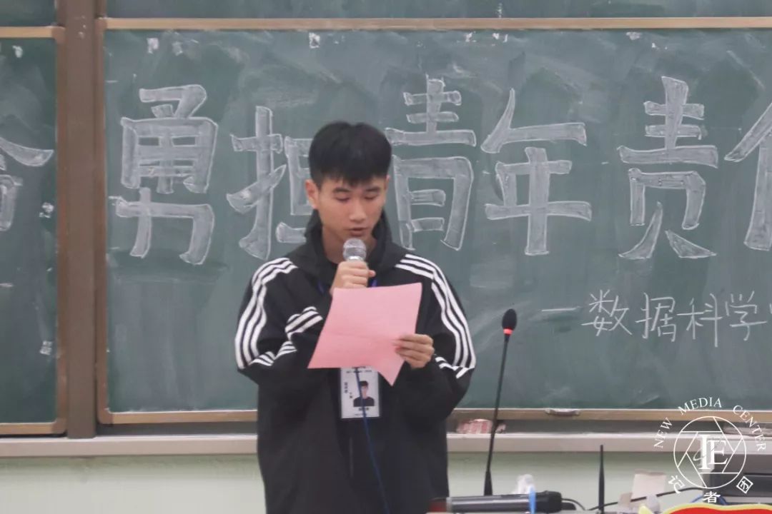 大会六项议程: 颁奖环节。伴随着新媒体的发展,网络也成为我们学习和宣传先进思想的舞台。在十一月班级团生线上学习活动中,19级计算机科学与技术1班和19级信息管理与信息系统2班凭借优异的表现获得了优秀班级称号,学生会主席刘深师兄为优秀班级颁发了优秀班级奖状。