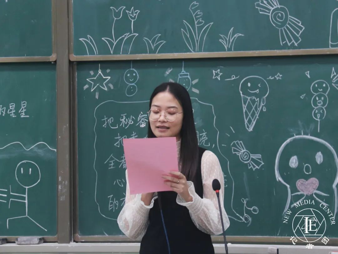 心理健康站宣传部干事代表杨萍上台发言。她表示,心理健康站是一个温暖的组织,在工作中自己学会了团结合作,主动思考,努力解决问题。同时她还表示,工作中最重要的就是同学们能互相沟通,共同解决问题。她承诺,自己将努力做好本职工作,积极地为心理健康站做出贡献。