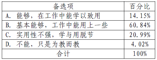 问题:您认为学校的教学能否体现出“应用型人才”的办学定位?