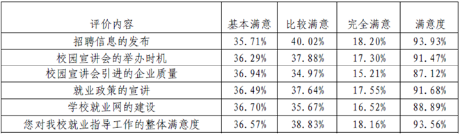为建立毕业生就业对人才培养的反馈机制,我校从2010 年起每年开展毕业生就业满意度调查,采取问卷调查为主,谈话走访为辅的方式,对毕业生及其用人单位进行调查,形成毕业生就业情况分析报告。2012 年起开始增加开展就业指导工作满意度调查工作,形成毕业生对就业指导满意度分析报告。这些报告为我校的专业设置、教育教学改革、人才培养提供了有价值的信息,为学校在招生计划安排、专业设置、学科调整、教育教学改革、人才培养等方面提供参考依据。