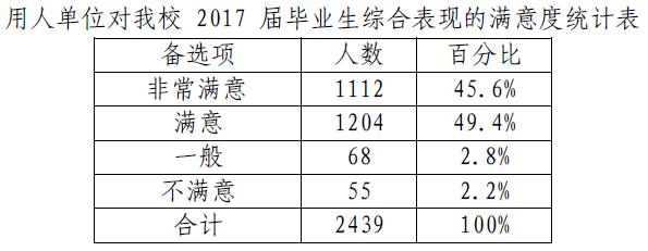 (一)用人单位对我校 2017 届毕业生综合素质的评价