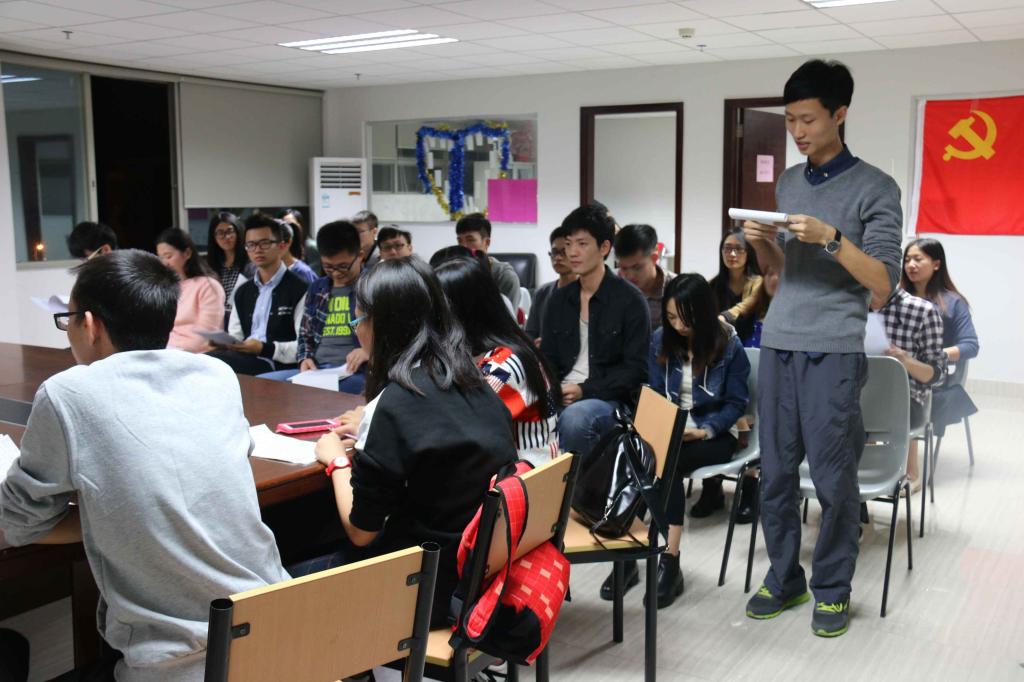 会议第一项:介绍我系学生党支部概况:党总支副书记——蒋大锐老师,教职工党支部书记——王忍老师,学生党支部书记——蒋云丽老师,学生党支部副书记——冯淑贞同志,组织委员——黄燕婷同志,纪检委员——王世豪同志,宣传委员——周泽英同志,统战委员——陈树鑫同志。其中,系学生党支部共有22名党员,正式党员13名,预备党员9名。