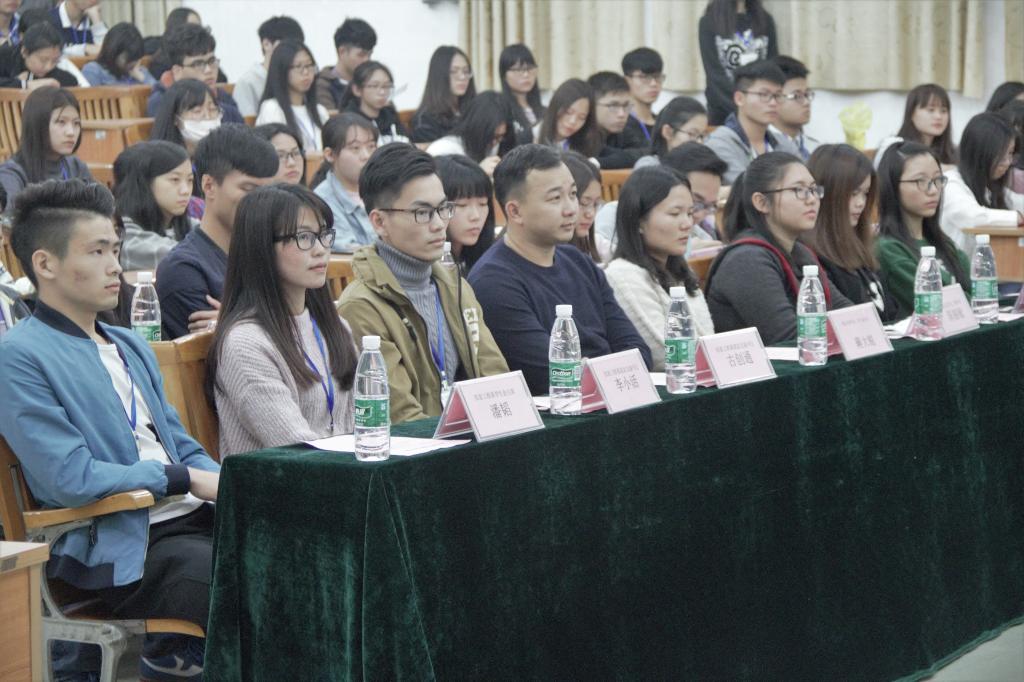 最后,是干事代表发言。在过去一个学期中,干事们收获了很多。组织部代表钟立豪同学讲述了自己对组织部工作的认识——什么都会、什么都做、也什么都不做、生动展现了组织部积极热情、任劳任怨、无为无不为的工作状态。而辩论队代表何颖琪同学则分享了从进入辩论队之初的激情昂然到这份热情逐渐退却之后依然尽心尽力地开展部门活动的经历。生活部代表林佳婕同学表示在部门学会了与人更好地沟通与配合。而编辑部代表钟鸿同学则学会了在部门工作之余如何协调规划好自己的学习和生活。