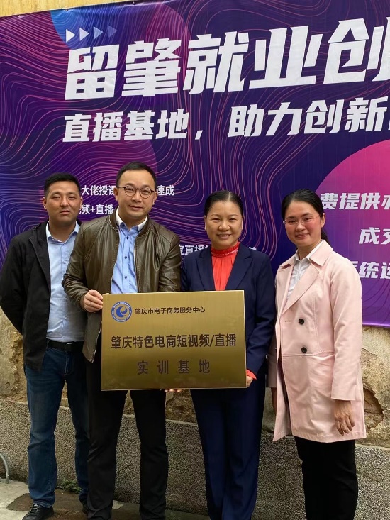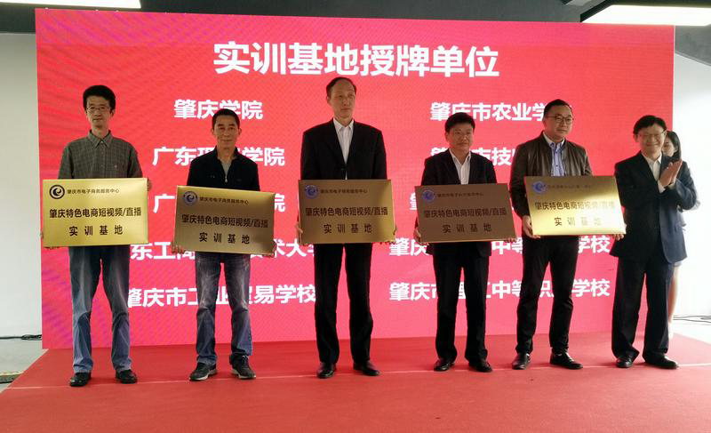 活动仪式上,肇庆市电子商务服务中心负责人王威介绍了“肇庆特色电商直播实训基地”,该基地是由肇庆市电子商务服务中心与肇庆特色产业园以及肇庆市10余所大中专院校三方合作共建的基地,旨在共同培训一批实战型电商直播人才,通过该市院校的毕业生在肇创业就业,带动该市特色产业发展。随后蒋大锐副院长出席了实训基地授牌仪式。
