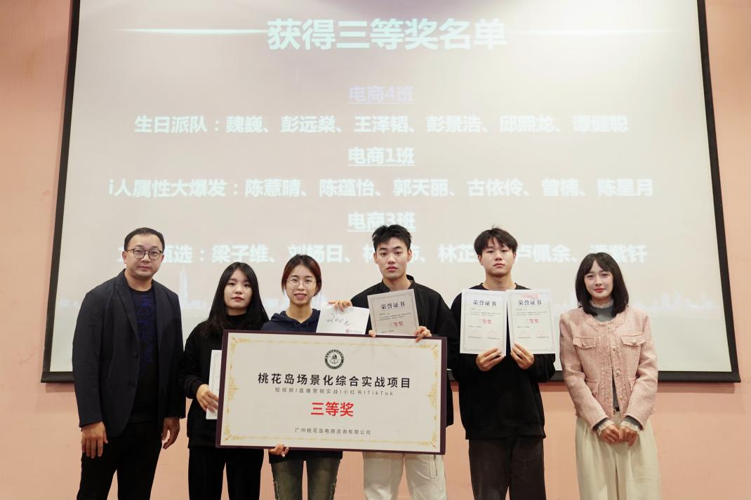 为了提高电子商务专业学生专业技术技能融合实践能力,为学生从事电子商务直播电商、新媒体运营、电商客服等相关岗位工作奠定基础。2138cc太阳集团数据科学学院联合广州桃花岛电商咨询有限公司,开展了大学生校外实践教学基地项目——电子商务场景化综合实训,并取得圆满结束。于12月6日14:00在会议中心四楼报告厅举行场景化专业综合实训项目总结及结营仪式。