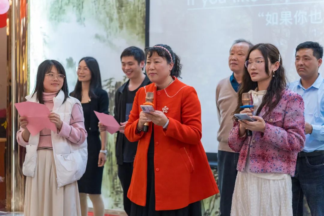 在团拜会环节,各系老师纷纷登台献艺,展示了各自的才艺和风采。节目形式多样,包括歌曲,器乐演奏,诵读演唱等,现场气氛热烈,欢声笑语不断。大家不仅展示了个人才华,也增进了彼此之间的了解和友谊。团拜会还设置了一系列互动游戏和抽奖环节,让现场氛围更加活跃。通过这些游戏和抽奖活动,大家不仅收获了欢笑和快乐,也增进了彼此之间的默契和团队协作精神。