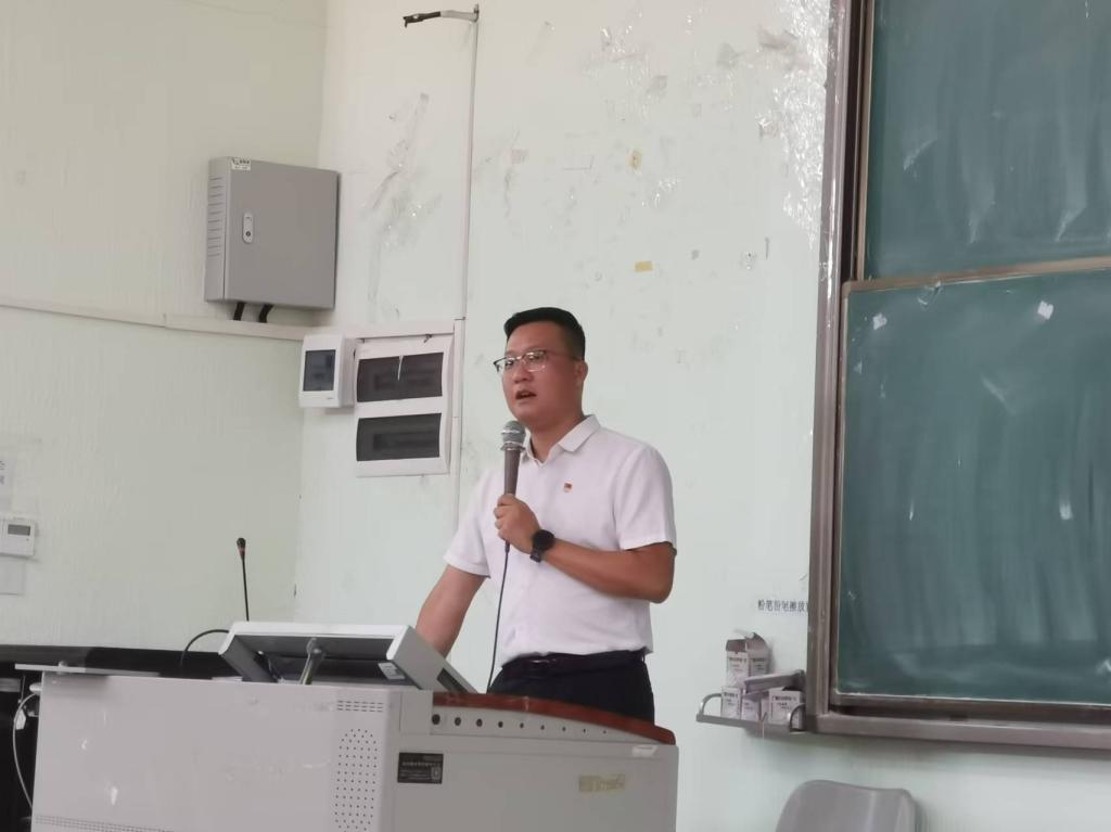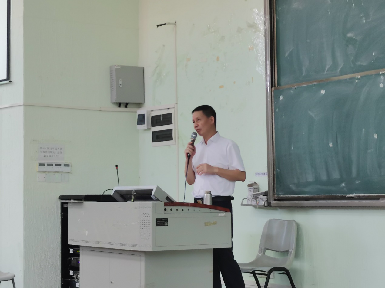 洪绍勇院助介绍了教科研方面的工作。他首先回顾了上半年学院取得的教科研成绩,随后详细介绍了学校的科研体系,最后鼓励全体教师积极投身教科研活动,介绍了学校为激励教师努力教学和科研而设立的考核奖励机制。