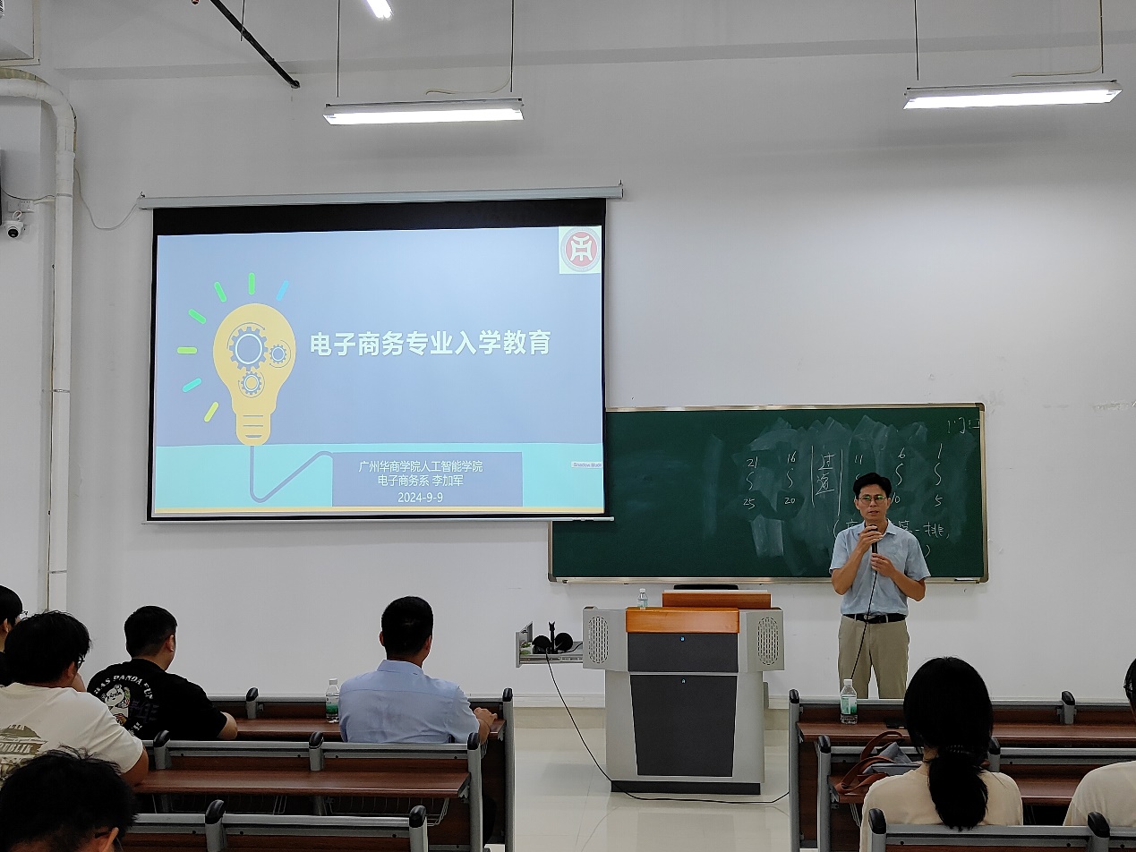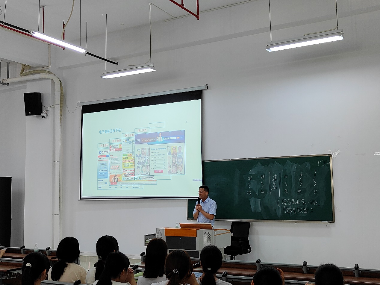 电子商务系主任李加军副教授首先介绍了电子商务专业的发展现状,随后,阐述了电子商务专业的培养目标,该专业旨在培养具备电子商务系统设计与开发、电子商务运营、互联网创新创业能力的人才。针对新生关心的“学什么”和“将来能干什么”的问题,李老师详细介绍了电子商务专业的课程设置,包括通识课程、学科基础课程、专业课程和综合实践课程,并列举了数据分析、网站设计开发、跨境电商等多个就业方向,为学生未来发展指明方向。李老师还强调了实践的重要性,鼓励新生积极参与学科竞赛、创新创业实践等,并通过考取专业证书提升自身竞争力。此外,李老师还介绍了学校丰富的资源,包括优秀的师资队伍、校内外实训基地等,为学生提供良好的学习和实践平台。最后,李老师为新生提出了学习建议,希望同学们能够好好学习专业知识,积极参与实践,多思考,不断提升自身综合素质,为未来职业发展打下坚实基础。
