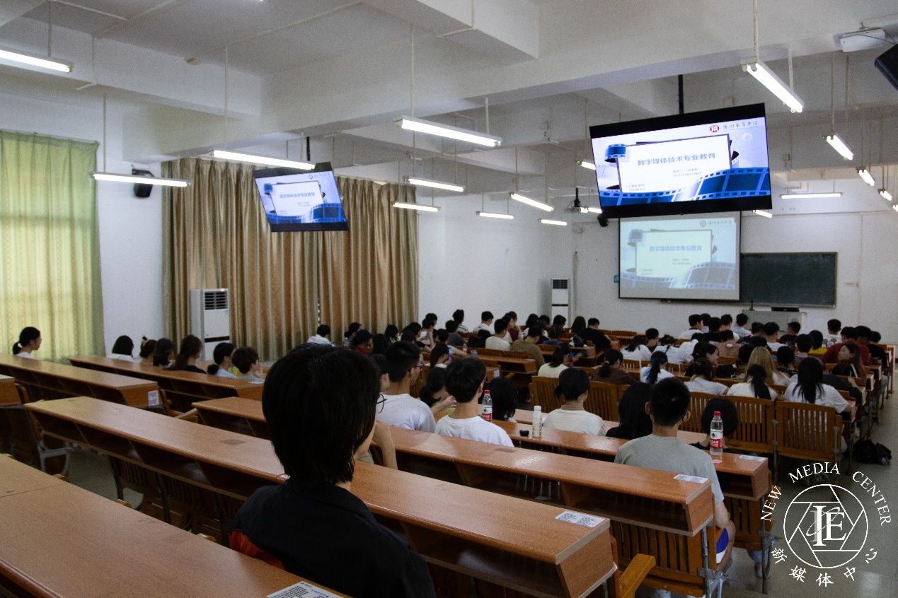数字媒体技术系主任马焕坚老师首先分析了数字媒体技术行业的现状和发展趋势。随后,他详细介绍了本专业的培养目标和方向,该专业旨在培养掌握数字媒体相关理论和技能的复合型人才,学生毕业后可以从事计算机动画、游戏软件、虚拟现实系统等领域的技术研发和管理工作,专业方向包括三维动画、交互媒体和虚拟现实等。马老师还介绍了数字媒体技术专业的核心课程,并强调该专业注重实践和创新的教学特色。此外,马老师鼓励学生积极考取相关证书,提升自身竞争力,并积极参加各类竞赛,如中国大学生设计大赛、创新创业大赛等,展示才华,积累经验。最后,马老师对新生提出了殷切期望,希望他们勤奋学习、勇于探索、团结协作,努力成为优秀的数字媒体技术人才。