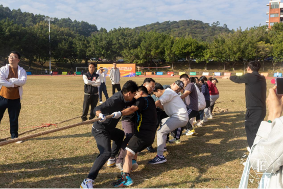 绿茵场上,男女选手齐心协力进行拔河比赛。他们紧握绳索,用尽全力向后拉拽,脸上洋溢着坚定与决心。观众紧张注视,加油声此起彼伏。