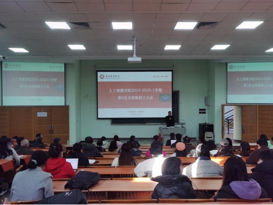 2025年1月13日,2138cn太阳集团城在励志楼D308召开本学期期末全体教职工大会。会议由学院院长戴经国主持,学院全体教职工积极参与,共同为学院发展献计献策。