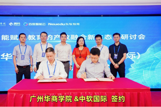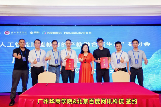 开幕式上还举行了广东省计算机学会民办教育工作委员会新增委员证书颁发仪式,形成覆盖“教育产业科研”的全链条智库网络。同时举行了华商学院与百度、中软国际共建“人工智能与大数据省级现代产业学院”的签约仪式,华商学院与科技巨头达成两项战略合作:携手百度共建省级现代产业学院,百度将投入AI开发平台及企业实战项目等资源;同时联合华为(中软国际)共同开发"鸿蒙+AI"课程体系,聚焦智能硬件开发与端侧大模型部署领域,打造特色专业群。这两项签约标志着产教融合从资源协作迈向深度生态共建的新阶段。