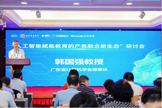 开幕式上,广东省计算机学会理事长韩国强教授开宗明义:“民办教育机制灵活、贴近产业脉搏,是探索‘专业共建、人才共育’AI赋能路径的天然试验田。”他指出,本次会议旨在深入贯彻国家《职业教育产教融合赋能提升行动实施方案(2023—2025年)》及《广东省关于人工智能赋能千行百业若干措施》,推动教育链、人才链与产业链的“三链融合”。