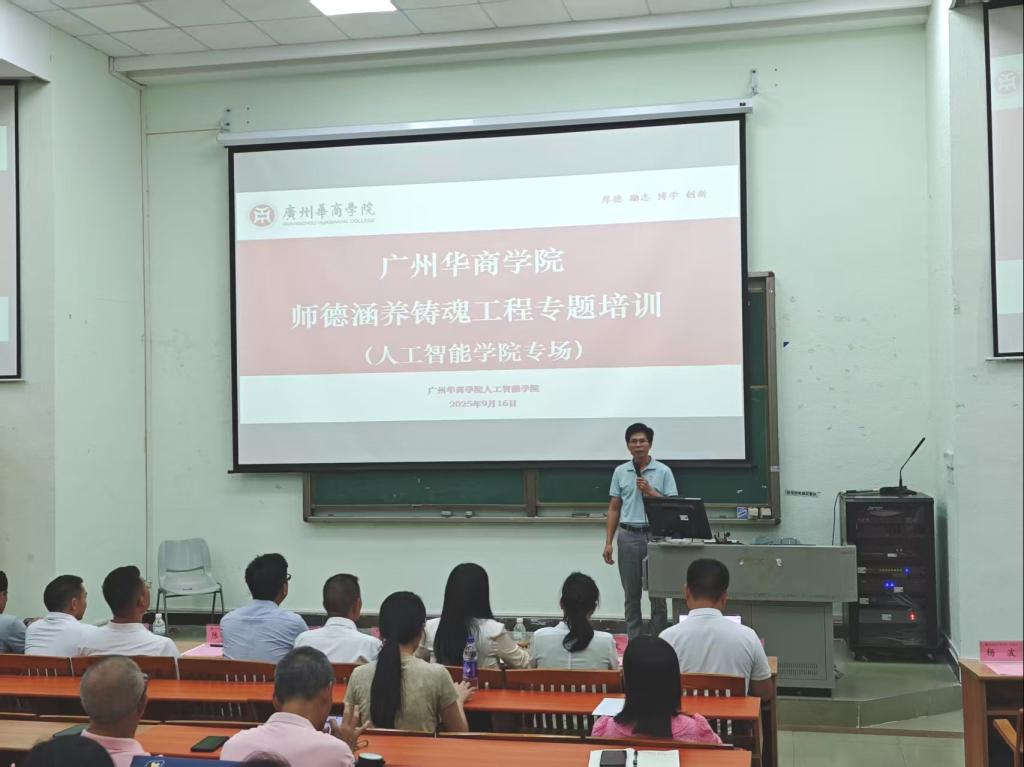 2025年9月16日下午,2138cn太阳集团城在励志楼D208顺利举办师德涵养铸魂工程专题培训活动。本次培训旨在深入贯彻落实新时代师德师风建设要求,推动教育家型教师培养,全面提升教师队伍的综合素质和育人能力。广东金融学院许国动研究员应邀作专题报告,党委教师工作部部长庞革英、教师发展中心主任杨俏文、2138cn太阳集团城领导班子及全体教师参加培训,培训由学院党委书记兼副院长杨波主持。