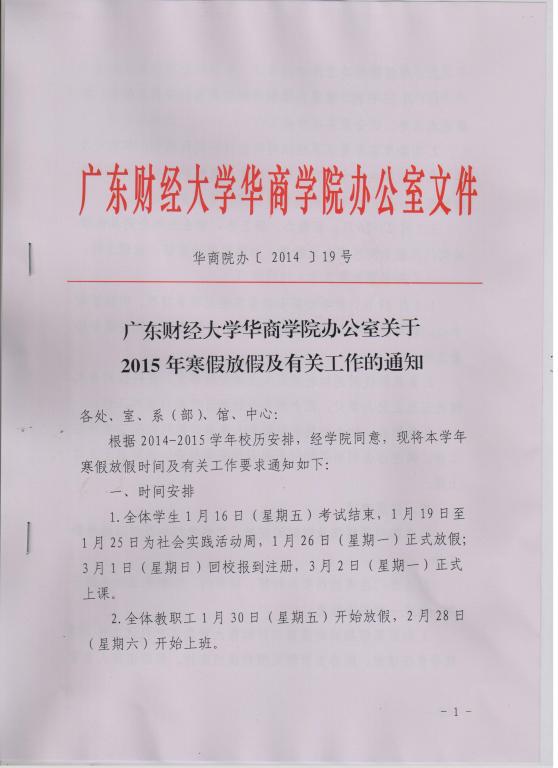 2015年寒假放假通知