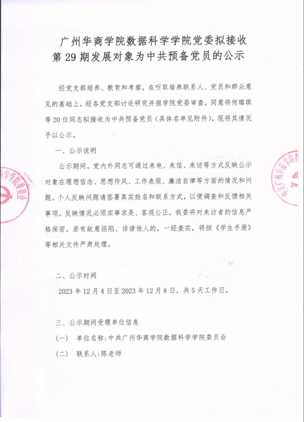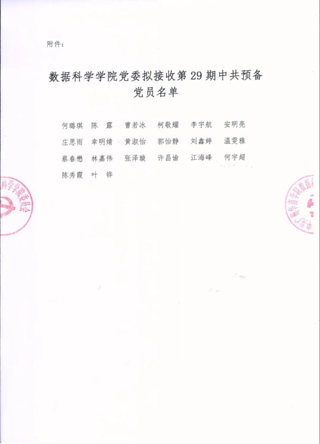 热点新闻 当前位置: 首页 >> 正文 2138cc太阳集团数据科学学院党委拟接收第29期发展对象为中共预备党员名单公示 2023-12-04 经党支部培养、教育和考察,在听取培养联系人、党员和群众意见的基础上,经各党支部讨论研究并报学院党委审查,同意将何璐琪等20位同志拟接收为中共预备党员(具体名单见附件),现予以公示如下: 【关闭】