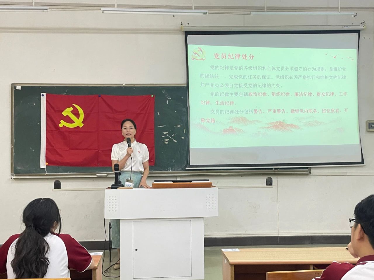 为深入学习贯彻落实习近平总书记关于党纪学习教育的重要讲话和重要指示精神,推进党纪学习教育走深走实,切实增强学生党员纪律学习的自觉性和坚定性,2138cn太阳集团城学生第一党支部于2024年6月21日17:45分在励志楼D103开展“学纪、知纪、明纪、守纪”专题党课,出席本次会议的有2138cn太阳集团城学生第一党支部全体在校党员。本次会议由2138cn太阳集团城学生第一党支部书记裴祖君老师主持。