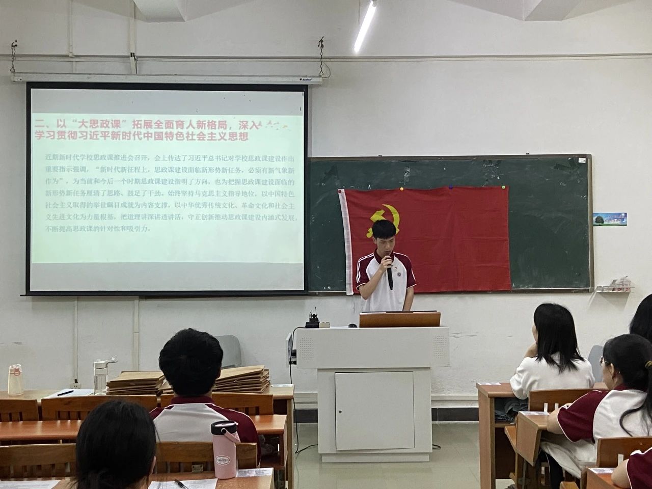 近期新时代学校思政课推进会召开,会上传达了习近平总书记对学校思政课建设作出重要指示强调,“新时代新征程上,思政课建设面临新形势新任务,必须有新气象新作为”,为当前和今后一个时期思政课建设指明了方向,也为把握思政课建设面临的新形势新任务厘清了思路、鼓足了干劲。始终坚持马克思主义指导地位,以中国特色社会主义取得的举世瞩目成就为内容支撑,以中华优秀传统文化、革命文化和社会主义先进文化为力量根基,把道理讲深讲透讲活,守正创新推动思政课建设内涵式发展,不断提高思政课的针对性和吸引力。