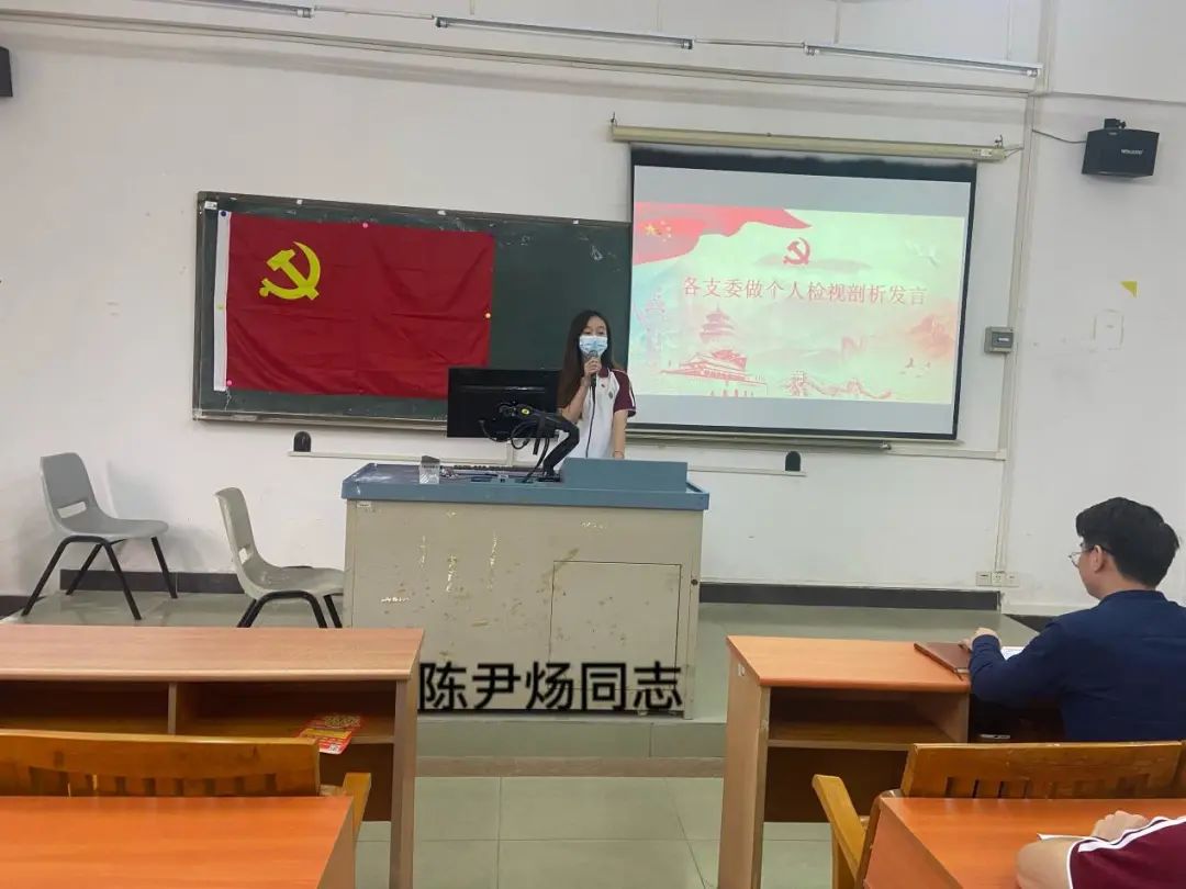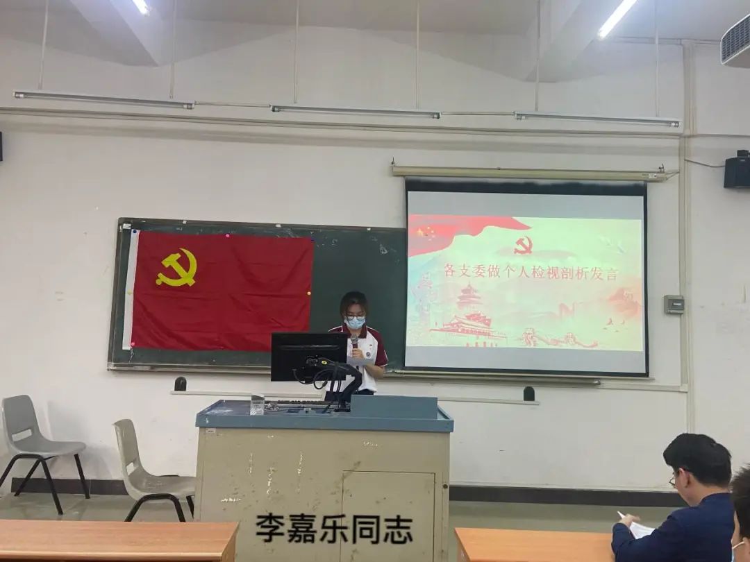党支部支委依次作个人检视剖析发言。各支委通过自我检视,开展批评与自我批评,深知在党支部的不断教育引导下政治思想水平和党性得到提高,更加坚定入党动机,更加严于律己,同时也认识到自身存在许多不足,正视不足,改正不足,认真学习贯彻习近平新时代中国特色社会主义思想,不断增强“四个意识”、坚定“四个自信”、做到“两个维护”,努力成为一名优秀的共产党员。