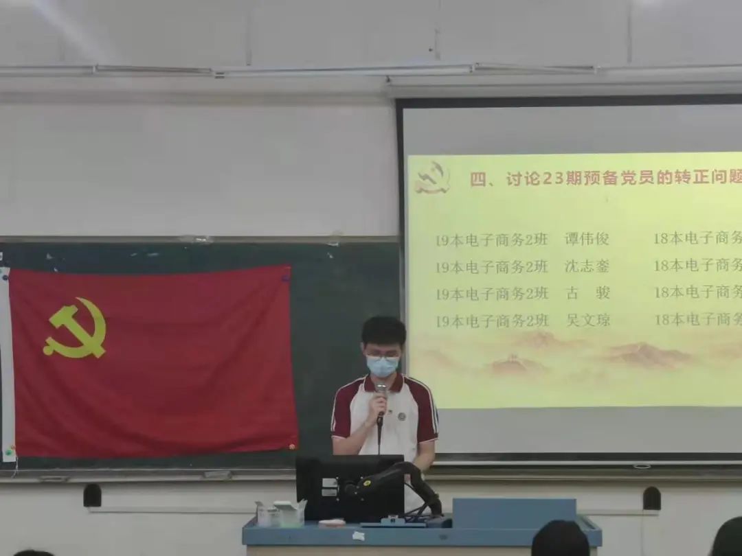 2022年5月7日17:45,数据科学学院学生第五党支部于励志楼D102召开第23期预备党员转正大会。出席本次会议的有数据科学学院学生第五党支部书记吴诗雨老师、支部全体党员。大会由陈炽堃同志主持。