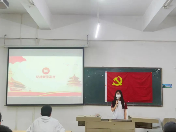 吴东葶纪律委员表示组织纪律性是大家身为一名学生党员的基本属性,我们党是用革命理想和铁的纪律组织起来的马克思主义政党,重纪律、讲纪律、守纪律,是我们党的一个鲜明的特色。而我们必须强化党的意识,始终把党放在心中最高位置,自觉在思想上认同组织、政治上依靠组织、工作上服从组织、感情上信赖组织,要在根本上杜绝无组织无纪律的思想。