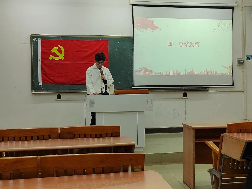 陈炽堃同志对本月党日主题活动做了总结发言,首先指出学习两会精神要实事求是、不忘初心,内化于心、外化于行,将严于律己与善于发现相结合;其次要树立好学生党员的形象,提升专业技能,加强对党的理论知识学习,学会照镜子,找差距,始终保持“好学之心”。最后希望全体党员同志要时刻谨记自己的入党初心和使命,让“请党组织检验我”这几个字不仅是简单停留在入党申请书中,而是付诸实际行动,践行自己向党组织递交入党申请书时的初心与信念!