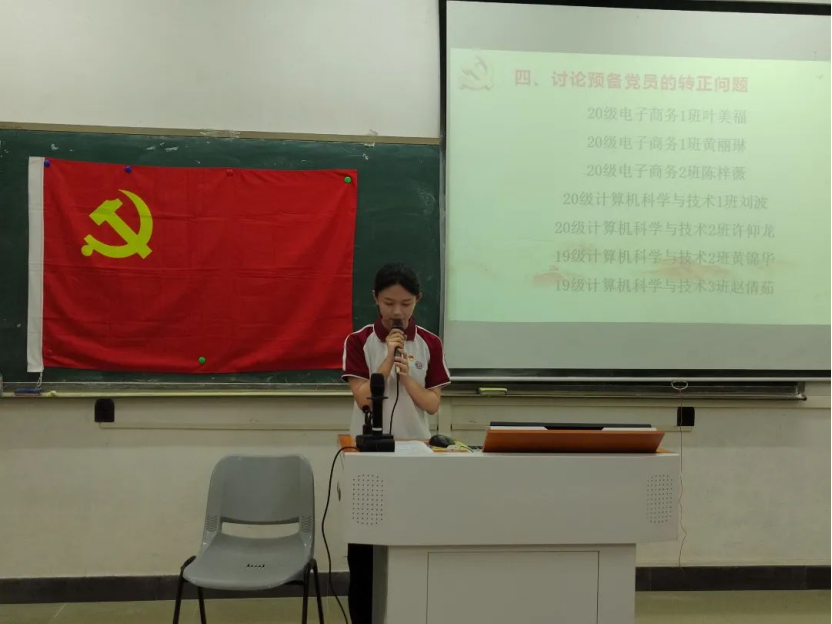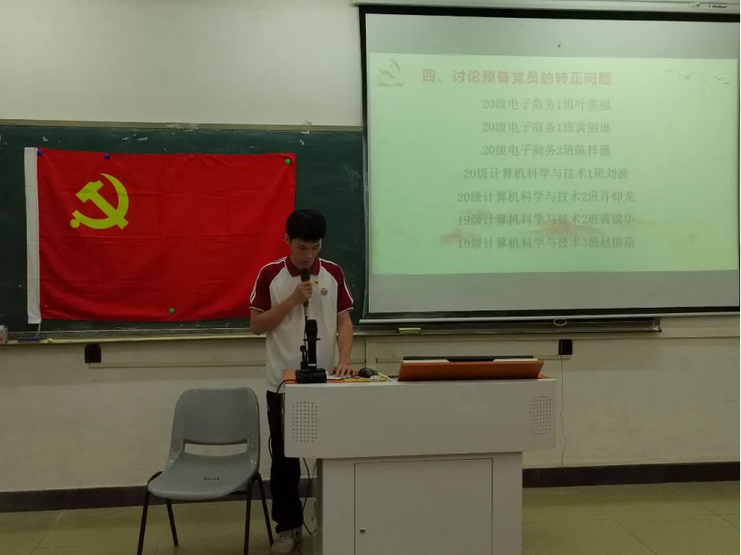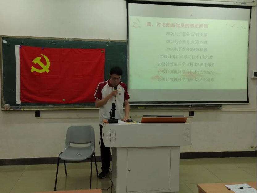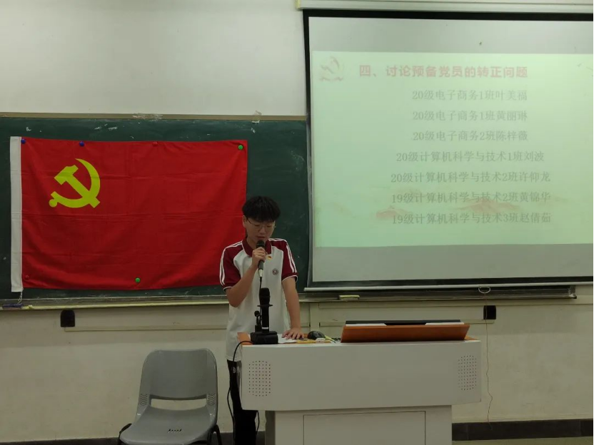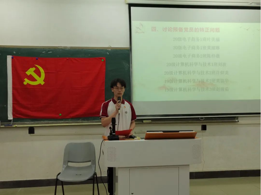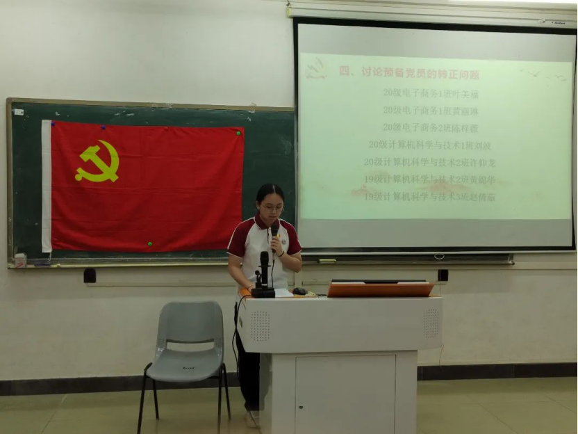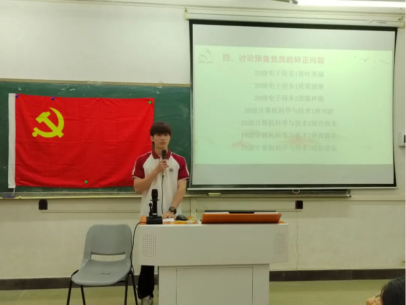 2023年6月8日19:45,数据科学学院学生第一党支部于励志楼D102召开第26期预备党员转正大会,出席本次大会的有数据科学学院学生第一党支部书记裴祖君老师以及数据科学学院学生第一党支部全体党员。