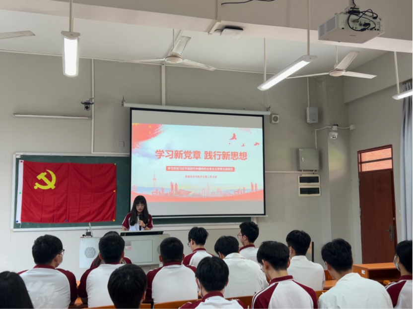 为学深学透党的二十大精神,不断增强全体党员的政治意识、大局意识、核心意识、看齐意识,自觉贯彻中国共产党章程各项规定要求,严明党的政治纪律和政治规矩。数据科学学院学生第二党支部于2023年5月29日12:10在启智楼313开展“学习新党章,践行新思想”主题教育理论学习,数据科学学院学生第二党支部全体在校党员参加了主题教育学习活动。此次活动由支部副书记带领大家深入学习中国共产党章程,进一步推进学习贯彻党的二十大精神走深走实,入脑入心。