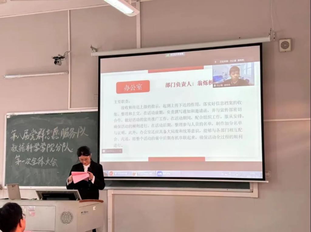 1.第八届党群志愿服务队数据科学学院分队办公室负责人翁烁梹作部门介绍