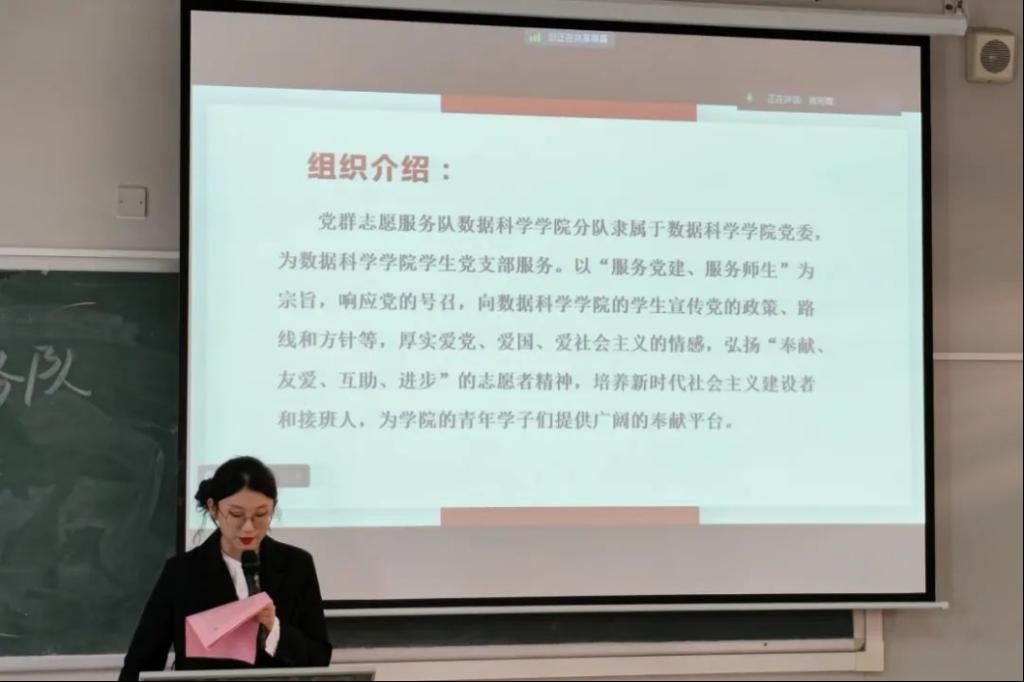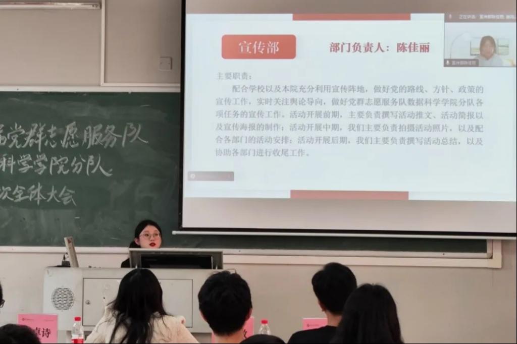 3.第八届党群志愿服务队数据科学学院分队宣传部负责人陈佳丽作部门介绍