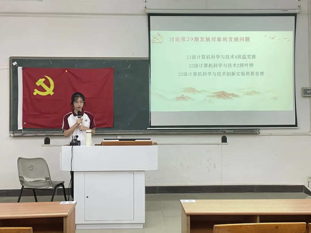 为进一步加强基层党组织建设,发展壮大学生党员队伍,切实提高党员发展质量,保持党员队伍先进性和纯洁性,按照党员发展细则和发展程序要求,数据科学学院学生第一党支部于2023年12月13日17:45,在励志楼D104召开第29期发展对象通表大会。出席本次会议的有数据科学学院学生第一党支部书记裴祖君老师、数据科学学院学生第一党支部全体在校学生党员以及学生第一党支部第29期发展对象。本次大会由施宛菁同志主持。