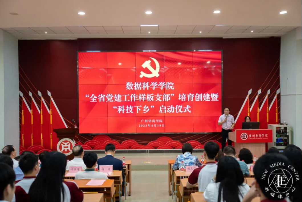 华商学院数据科学学院“全省党建工作样板支部”培育创建暨“科技下乡”启动仪式于2023年4月18日14:45在励志楼C408召开,出席仪式的有: