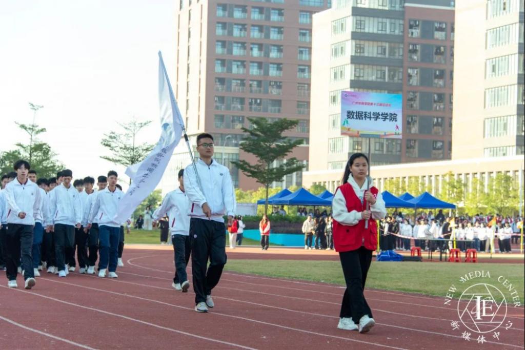 紧随其后的是各学院方阵队伍的进场,向主席台前展示着各自学院的精神风采,现场的气氛愈发热烈,观众们为他们欢呼鼓掌,数据科学学院方阵队伍由各个年级的学生组成,他们身姿挺拔,意气风发,日光灼灼如星辰闪烁,步伐一致,整齐划一,齐声高喊起口号,逐光前行而朝气蓬勃,数据科学学院学子鸿鹄志,不负韶华且自知,为我院参赛运动健儿们激昂斗志。