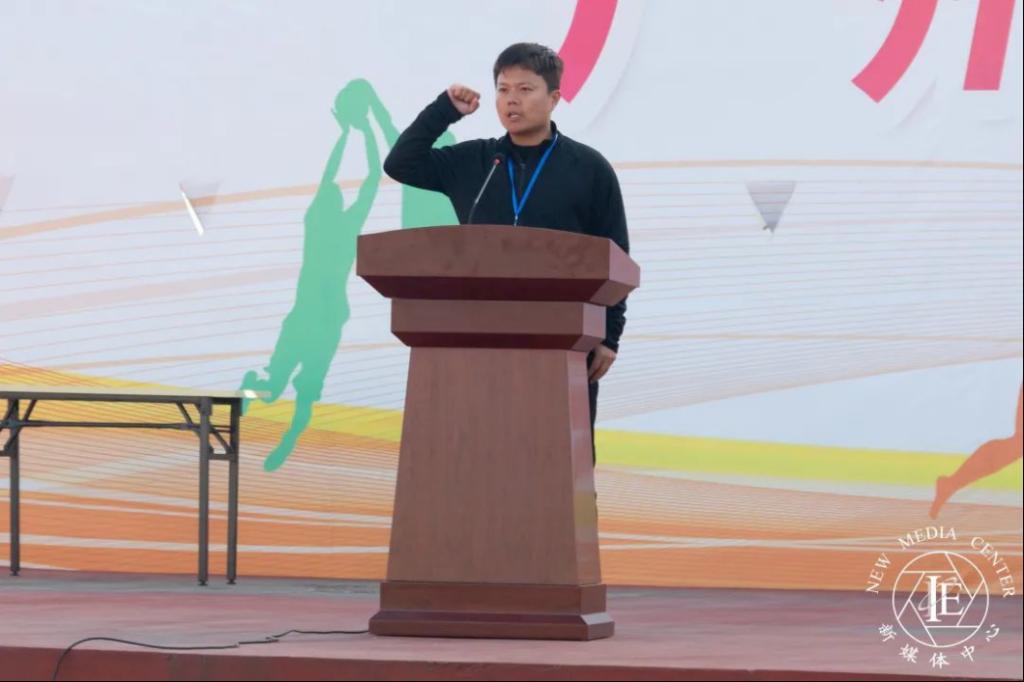 段远鹏裁判员代表进行宣誓,全体裁判员都将严格遵守遵守比赛事纪律,严守纪律,秉持公正的原则,圆满完成裁判工作,为运动会的顺利进行做到尽职尽责,预祝运动会取得圆满成绩。
