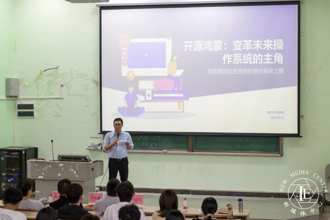 张彦博主任的讲座内容主要涵盖了大学生的开源第一课、走进开源鸿蒙世界,开启万物智联新征程以及开源与大学生的职业发展三个部分,通过介绍开源软件的起源和发展,普及了开源文化,结合当代时代的发展以及日常生活场景导入,详细解读开源鸿蒙系统核心技术和应用场景,他着重提到同学们应紧跟时代的发展,根据所学专业对应所需岗位职能要求来提高个人的专业水平,提高个人的创新能力和实践能力。