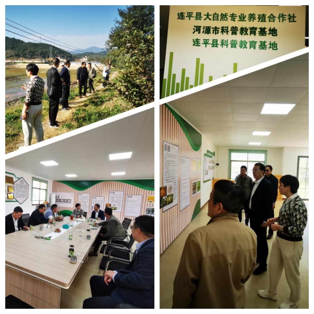 在鹤湖村支部书记、村委主任梁阳旺等村委会领导班子的陪同下,我校代表团首先参观了当地的两个重点农村企业:连平县大自然专业养殖合作社和连平县元善镇果满园农场。