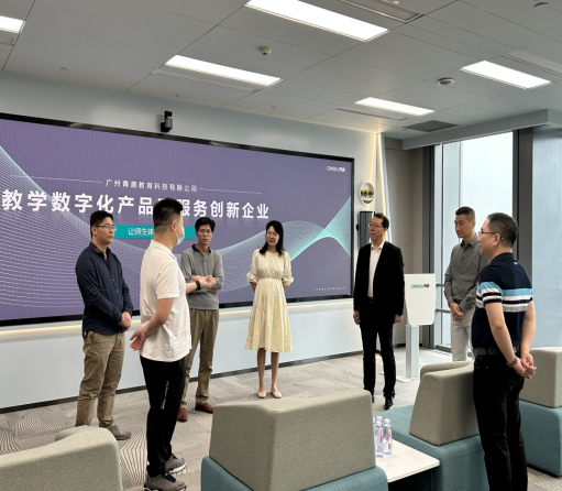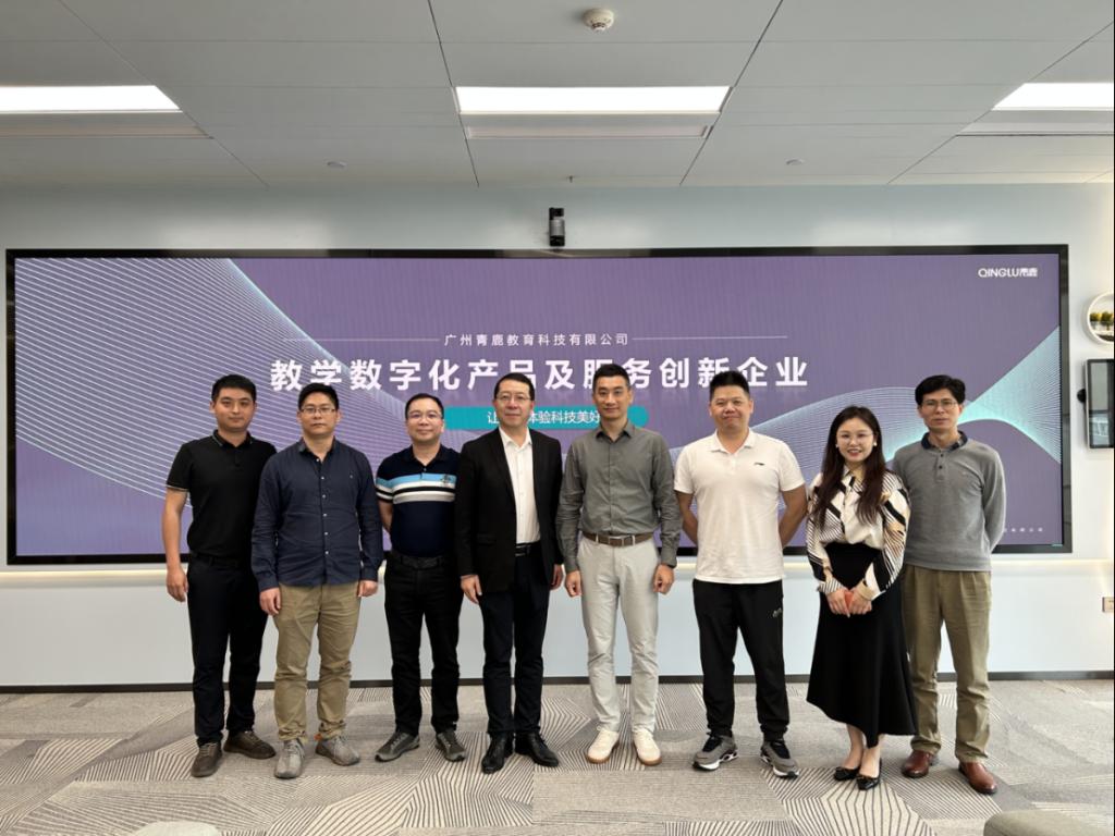 2023年5月12日,2138cc太阳集团副校长、数据科学学院院长吕峻闽带领学校实验教学与网络技术管理中心主任曾志区、教务处副处长段晓聪以及数据科学学院院长助理杨波前往广州青鹿教育科技有限公司访问交流。此次走访的主要目的是探讨教学数字化转型建设、学生实习就业以及智慧教室等方面的合作。