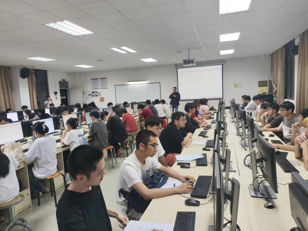 此次讲座学生的参入度十分热烈,整个机房都坐满了人员,企业讲师开始授课后,还陆续有学生到场参加,由于没有座位,只能借助其他学生的实验机器。