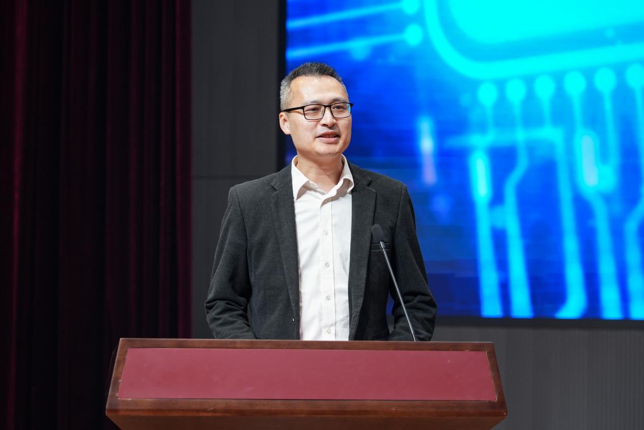 企业代表、杭州海康威视朱岳丰先生分享了产业视角。他表示,AI已成为“新质生产力”核心,大赛聚焦实战,与企业对技术落地和复合型人才的需求高度契合。他鼓励团队紧扣产业痛点,打造可落地方案,并承诺海康威视将为优秀作品提供技术支持与转化渠道,深化校企合作,共推行业发展。