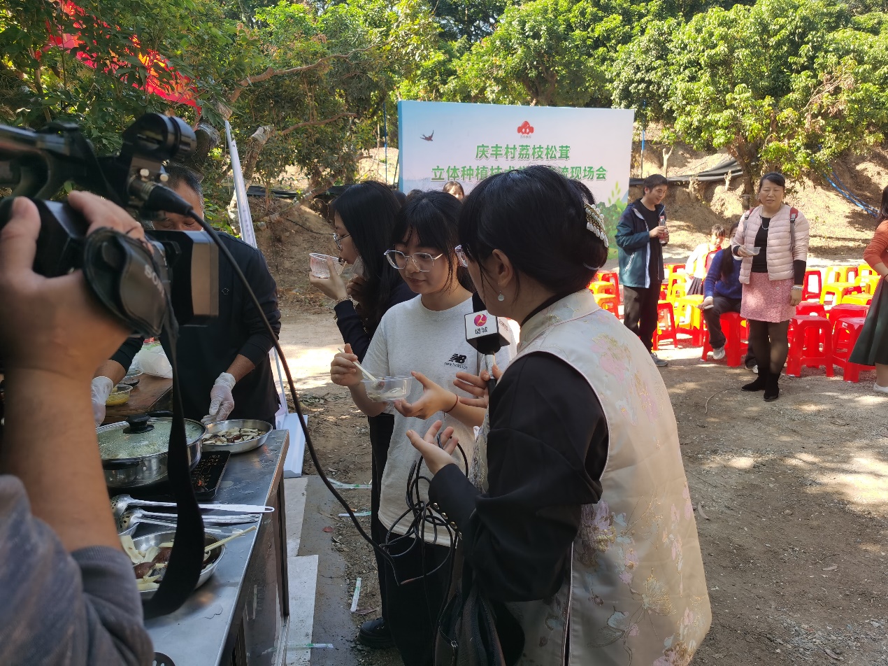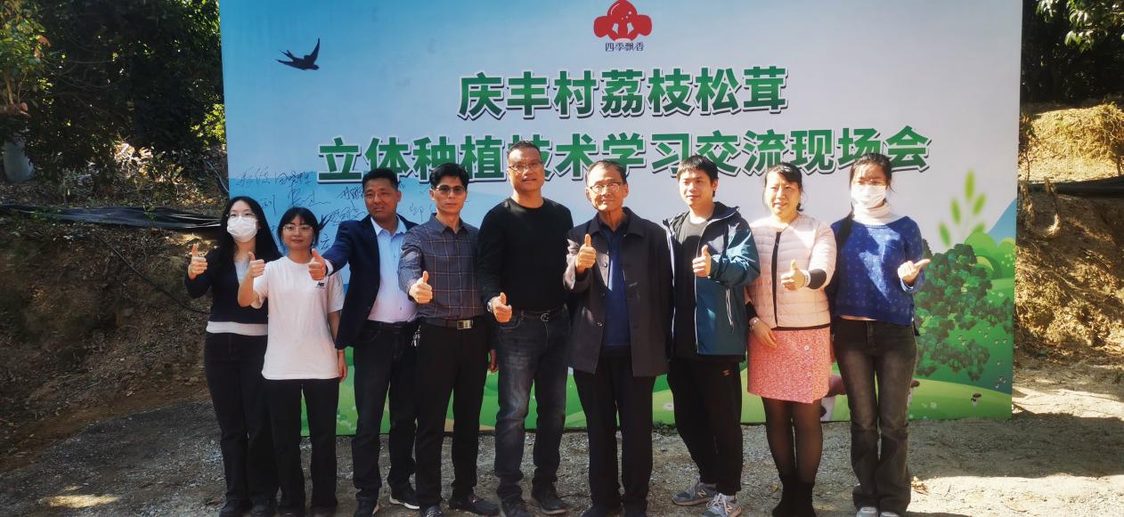 1月19日,师生前往增城区荔城街庆丰村马屋社荔枝松茸立体种植技术学习交流现场会。
