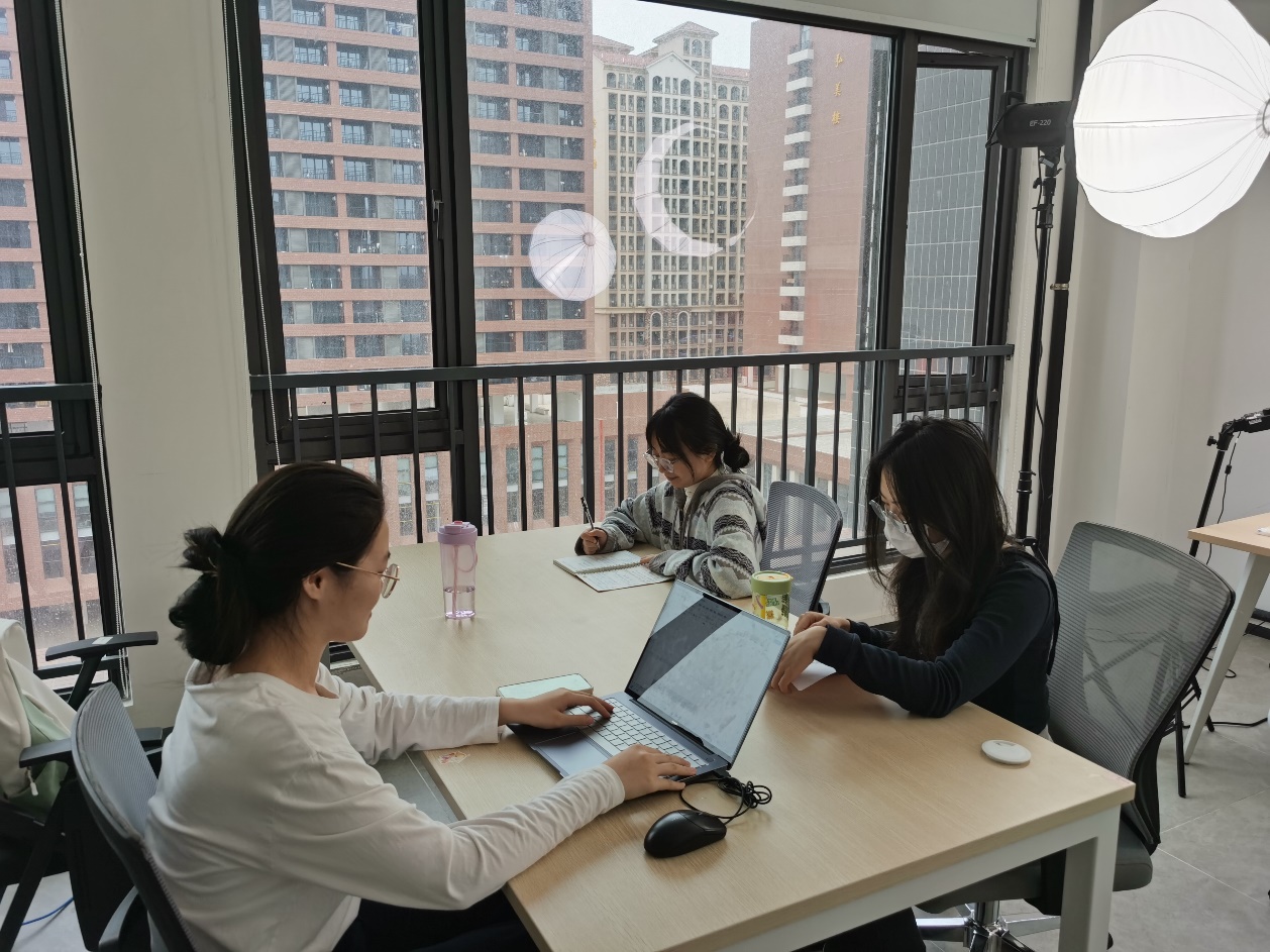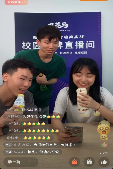 1月11日,联合桃花岛开展直播助农项目,组建工作坊,学生开展直播相关技能学习与实践。