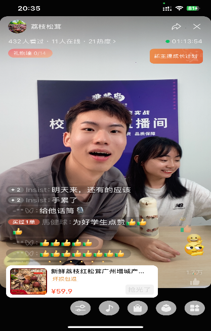 项目简介:项目团队由电子商务专业学子组建。团队成员在对广州增城区荔城街庆丰村马屋村荔枝红松茸销售情况进行调研的过程中发现,目前市场上红松茸农产品存在对种植技术管理要求高、产品销售困难、数据化程度不高、资源利用率低等问题,针对存在的问题提出