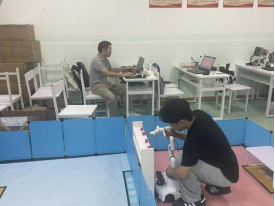 为全力冲击赛事奖项,在洪绍勇老师的指导下,由梁展鸿同学带领的“数智峰行”团队提前数月展开系统性备战。团队紧扣“智慧零售”赛项技术要求,聚焦商品精准识别、机械臂抓取等关键环节,从算法优化到系统联调,开展了多轮迭代测试,持续优化系统性能。